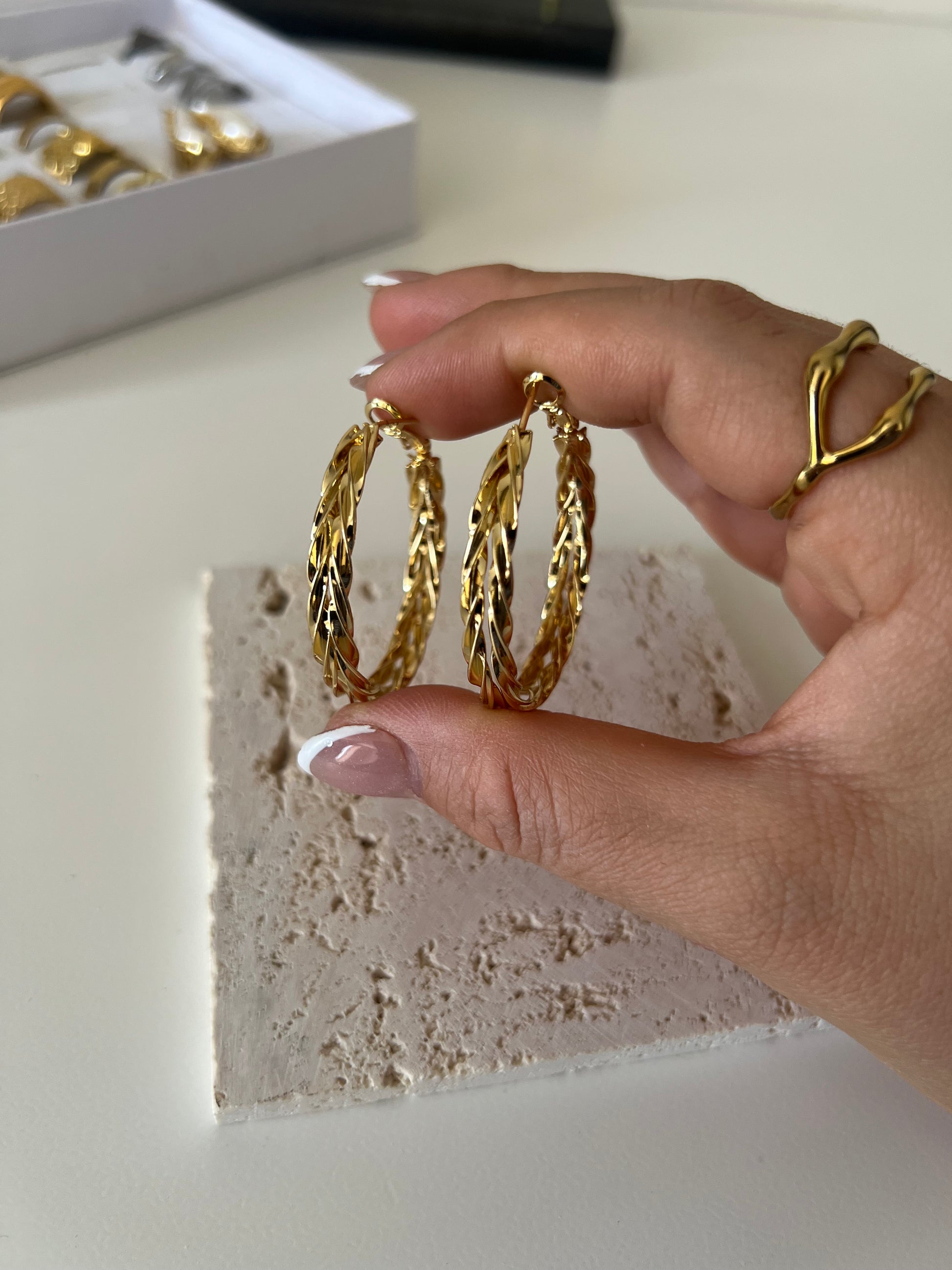 Material: Baño de oro 18k, libre de níquel e hipoalergenico, base de Bronce.