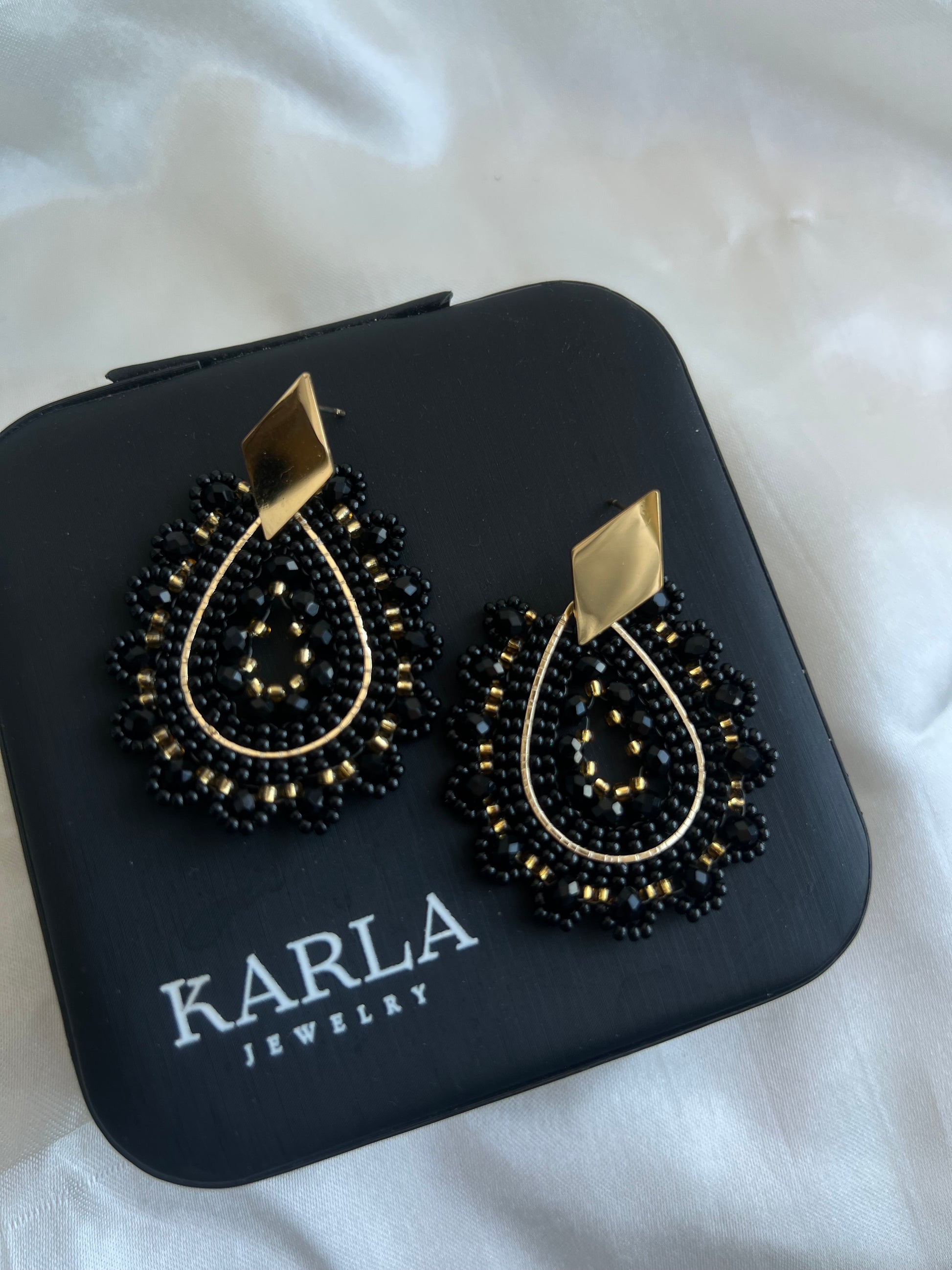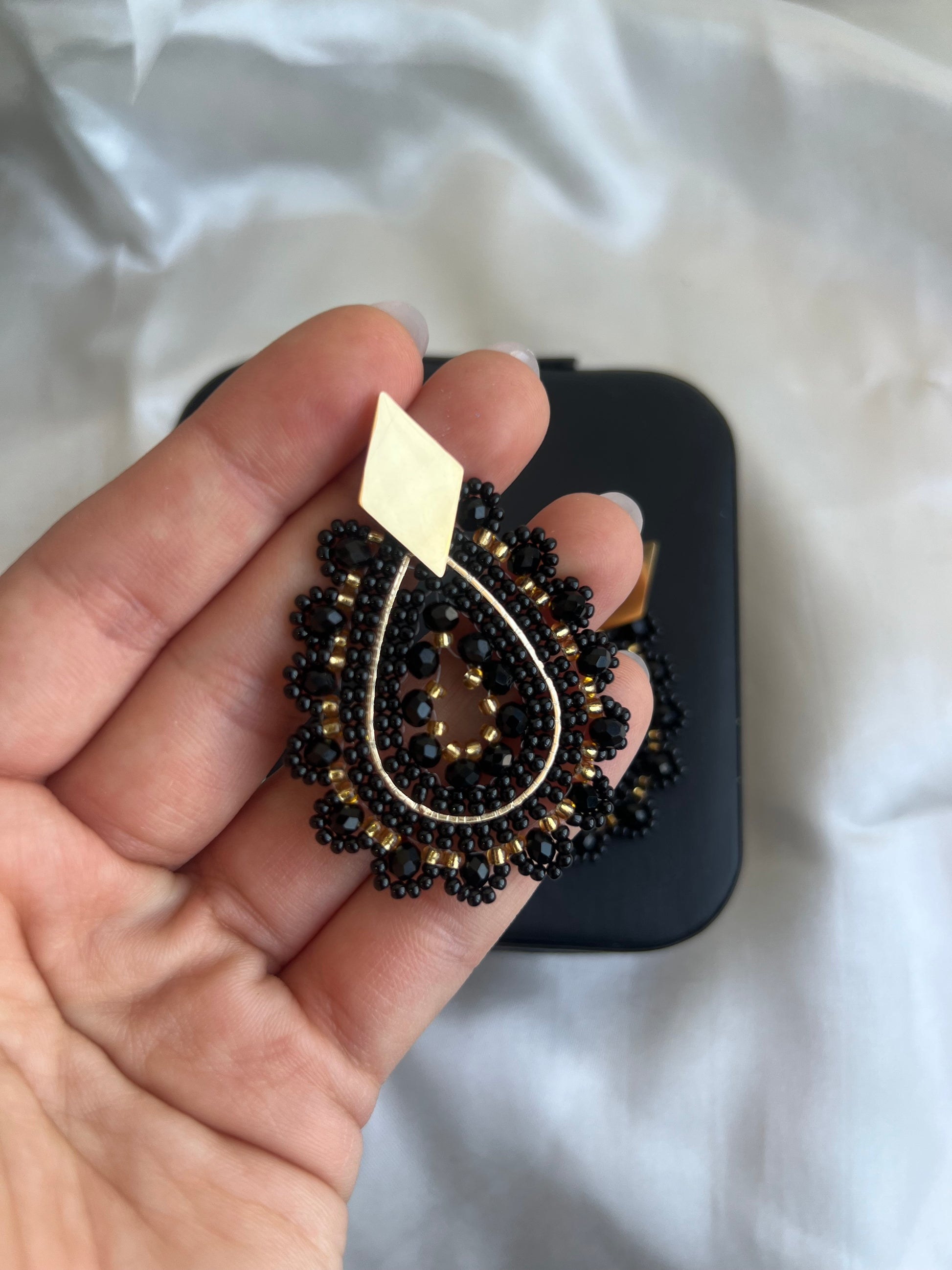 Aros hechos a mano con mostacillas y cristales, con base de acero quirúrgico, muy ligeros.