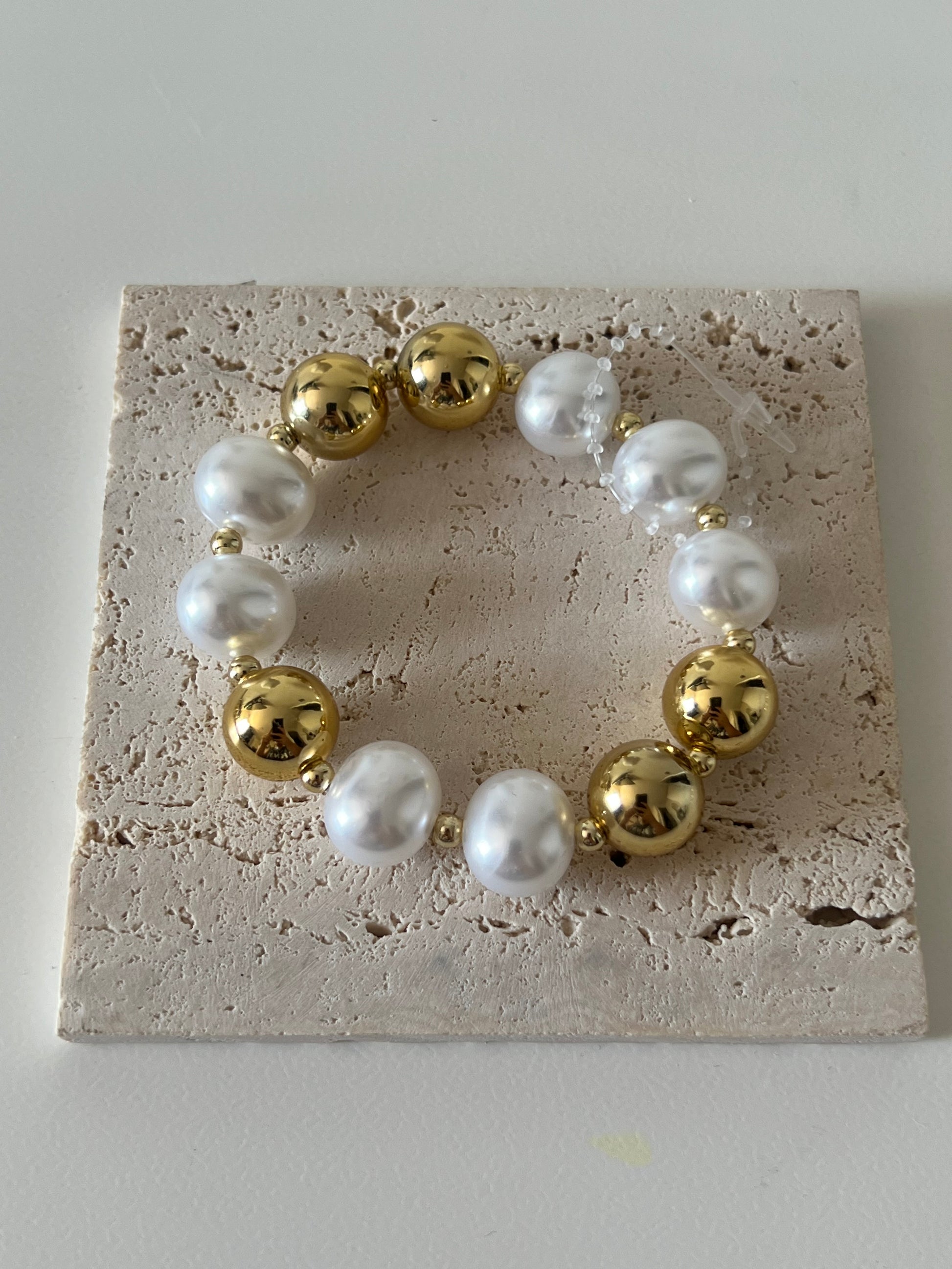 Material: Pulsera elástica da de balines en Baño de oro 18k y perlas sintéticas